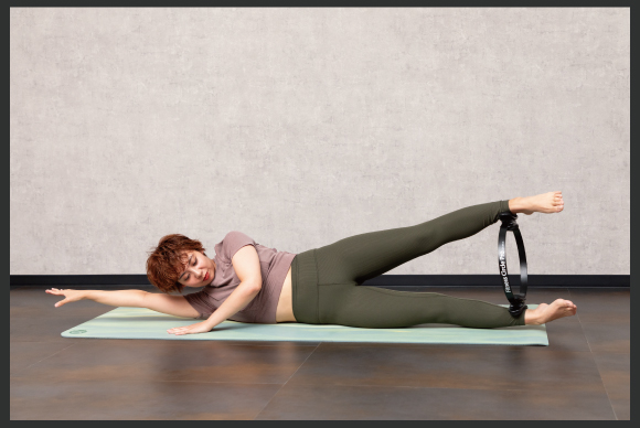 「プロップス」と呼ばれるピラティスツールを使用してより本格的な動きも可能になってきます。