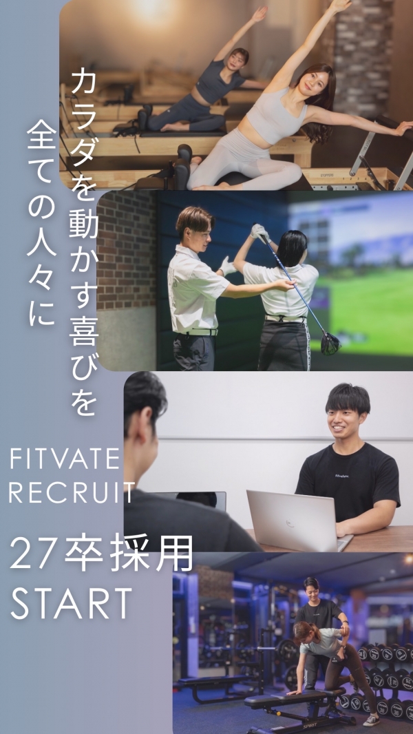 女性専用マシンピラティススタジオ「OLUTANA pilates」や、24時間ジム×パーソナルジム「BLUE FITNESS24」に加え、24時間インドアゴルフ×ゴルフパーソナルジム「BLUE GOLF24」を首都圏エリアにて50店舗以上展開する株式会社FITVATEは、27卒 新卒採用をスタートいたしました。